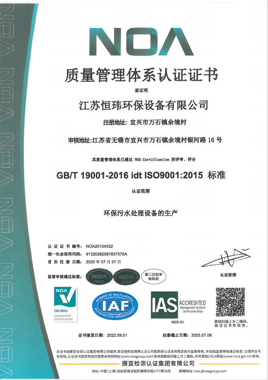 ISO9001質量管理體系認證證書